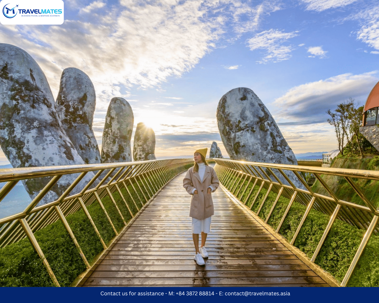 Since the opening in Jun 2018, Golden Bridge became one of the symbols of Danang City. This masterpiece is located in Ba Na Hills which was founded in 1919 by French colonists and used as a leisure spot for French tourists. On a full day trip to Ba Na Hills, you can enjoy a special architecture of old French villas, walk into the Golden Bridge, take one of the world’s longest cable cars up to the mountain and visit a luxury entertainment area for the French colonists – the Debay Wine Cellar.